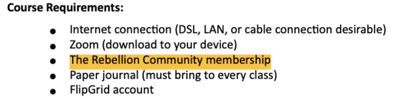 A landing page from which students were required to purchase platform access describes the website as a “virtual community” that “exists far, far away from the internet bullies and trolls.” Wisner offered a more frank description of her “community” in a now-deleted June Facebook post, writing, “The Rebellion community is a safe place to coordinate our efforts to burn everything to the fucking ground.” She added that “100% of membership fees are donated to Planned Parenthood.”