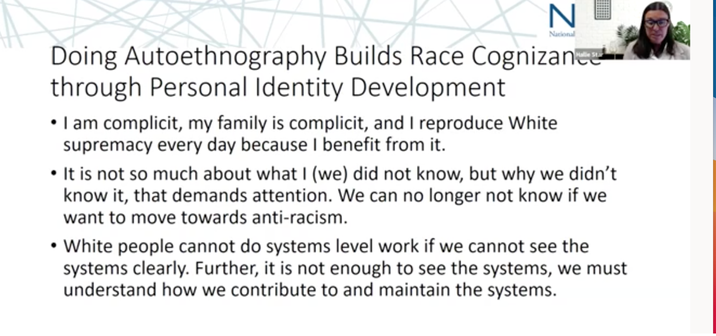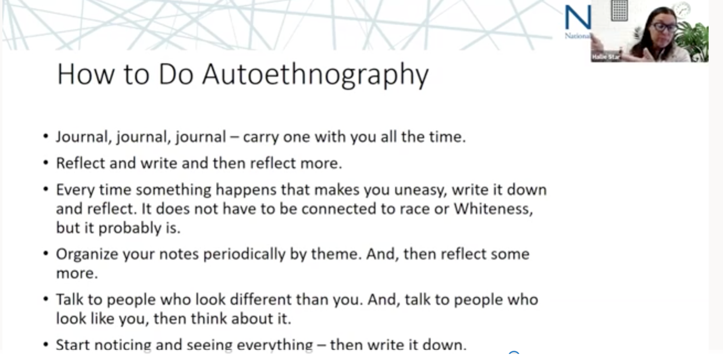 During the presentation, Dr. Star shared her family’s story through critical autoethnography, stating “Whiteness was everywhere.”