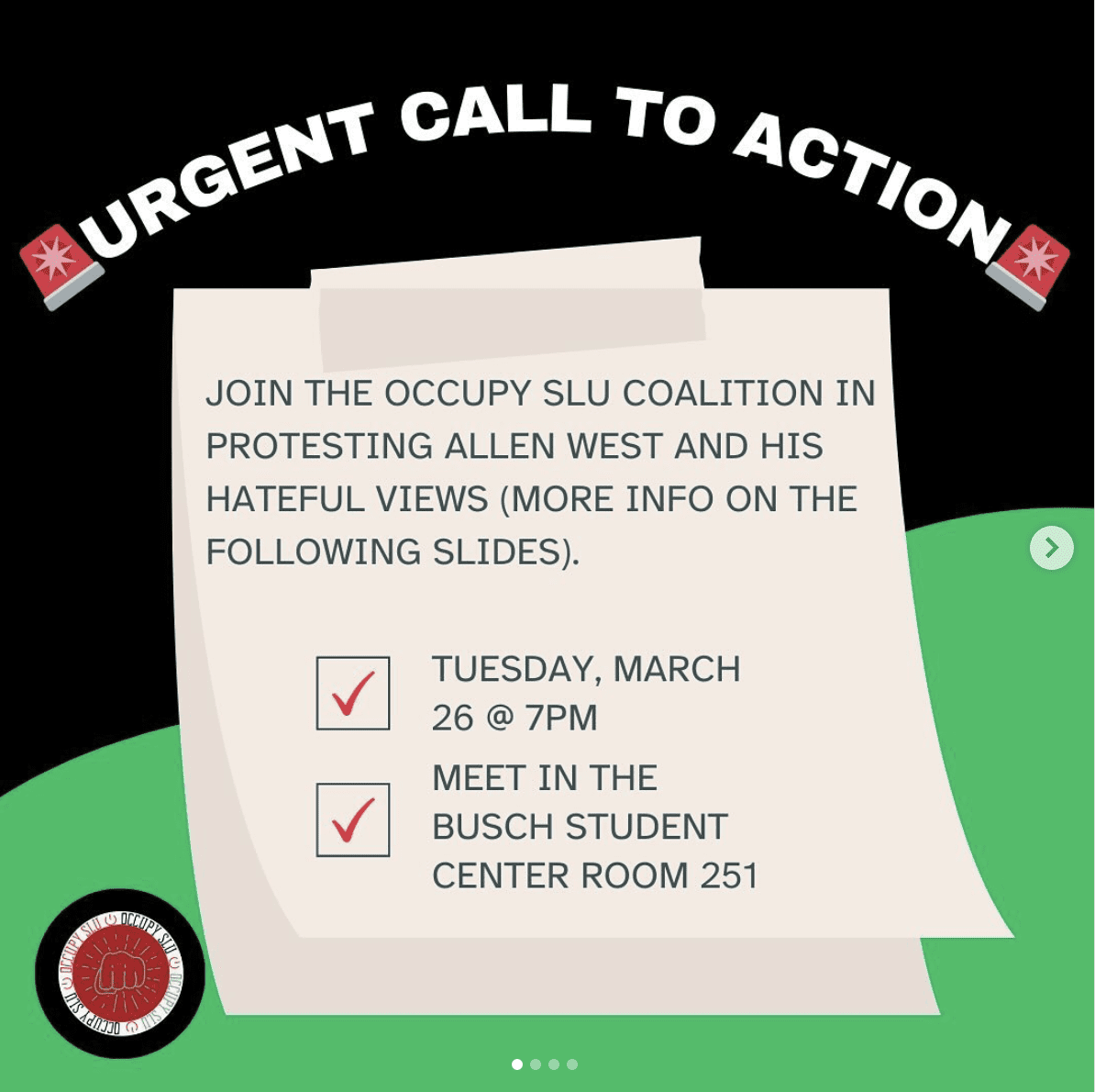 Radical leftists at Saint Louis University are organizing a protest against an upcoming lecture featuring Lt. Col. Allen West, according to a social media post by the Occupy SLU Coalition.