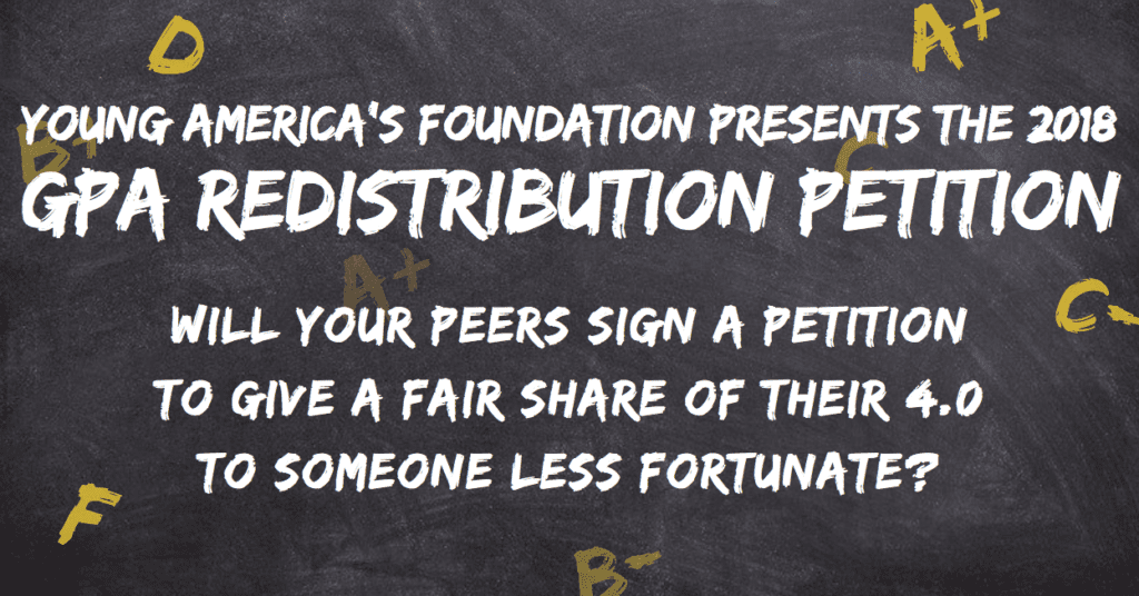 Leftists are constantly urging conservatives to “pay their fair share” and insisting that “the 1%” need to have their wealth redistributed to those who don’t have as much. Well, now’s your chance to tell them to put their money—or in this case their grades—where their mouth is by challenging your peers with a petition to […]