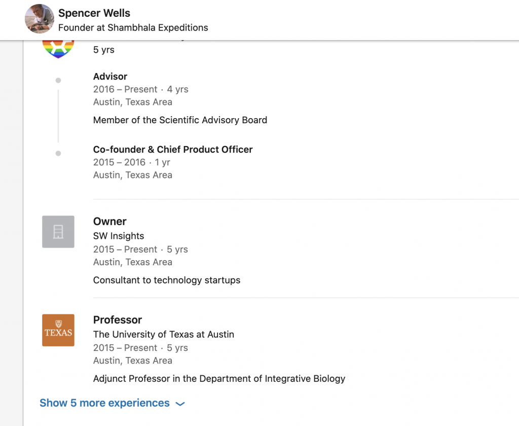 UPDATE: In a tweet, UT-Austin stated that Wells is no longer employed by the university. “Spencer Wells is no longer a faculty or advisory council member at UT,” they wrote. “He previously had a courtesy, unpaid appointment as a part-time adjunct that did not involve teaching. That ended in May and was not renewed. We do not have any association with the views held by Mr. Wells.”